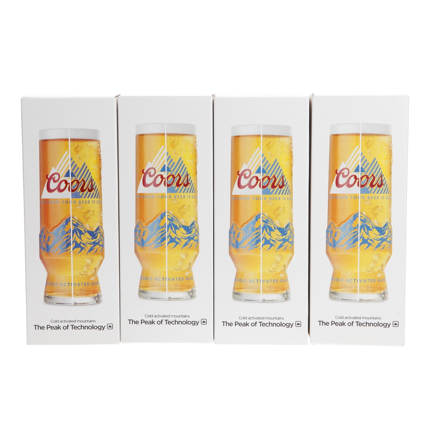 This set of 4 Coors Light pint glasses is a perfect addition to any man cave or collection. The glasses are embossed with the Coors logo and are made of high-quality glass, making them ideal for enjoying your favourite lagers and Weissbiers. Imported from Germany, these glasses are perfect for beer enthusiasts looking to add a touch of breweriana to their home. Cheers to good taste with this stylish and practical set of pint glasses.
