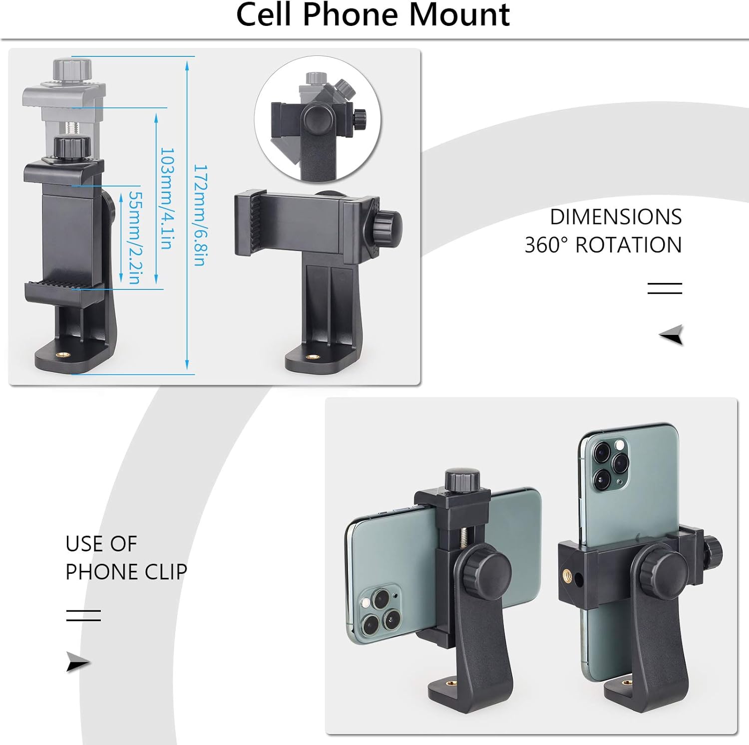 - 【Versatility】 Quick-release mounting plate to ensure fast transitions between shots; Compatible with most digital cameras, video cameras, still cameras, devices, smartphone etc. And we give a phone holder mount as a gift ,Convenient use of cell phone tripod.